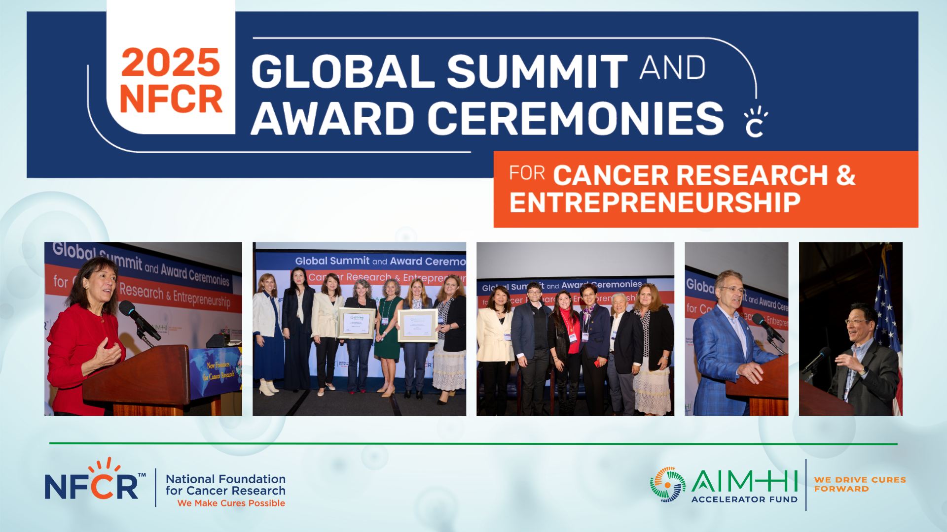 The National Foundation for Cancer Research and AIM-HI Accelerator Fund co-hosted the 2025 Global Summit and Award Ceremonies for Cancer Research & Entrepreneurship on October 24 at the National Press Club in Washington, D.C., convening an extraordinary community of leading scientists, clinicians, entrepreneurs, and supporters united by one purpose: to conquer cancer together.
