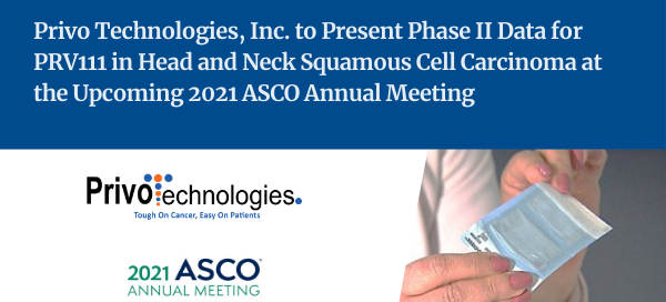 Privo Technologies, Inc. to Present Phase II Data for PRV111 in Head and Neck Squamous Cell Carcinoma at the Upcoming 2021 ASCO Annual Meeting